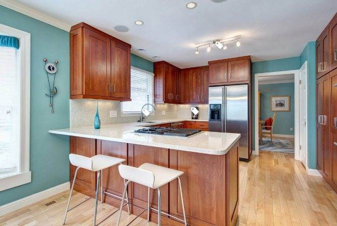 Бледно-мятный цвет отлично подойдет для отделки стенового пространства. Главное – не делайте стены слишком яркими, а особенно, глянцевыми. Лишний блеск здесь не к чему. Лучше использовать матовую фактуру. При этом, обязательно гарнитур покупается отличной гаммы