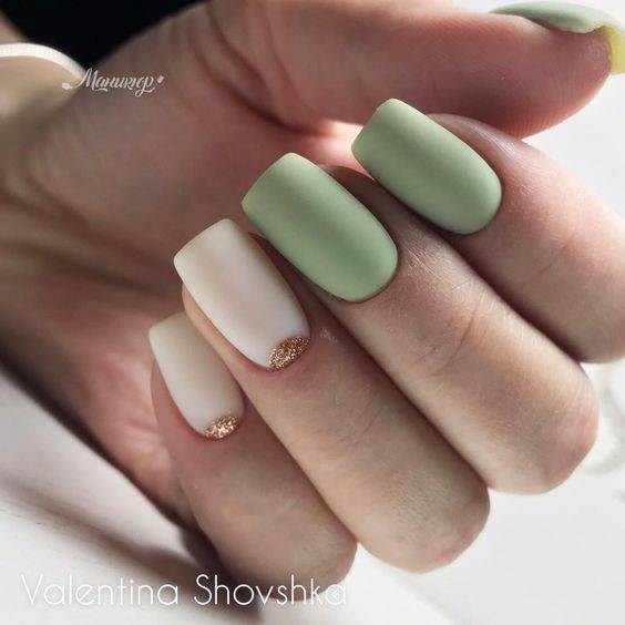 Фисташковый цвет больше всего подходит для ногтей средней длины, но это не принципиально. Форма может быть овальной, круглой или квадратной.
