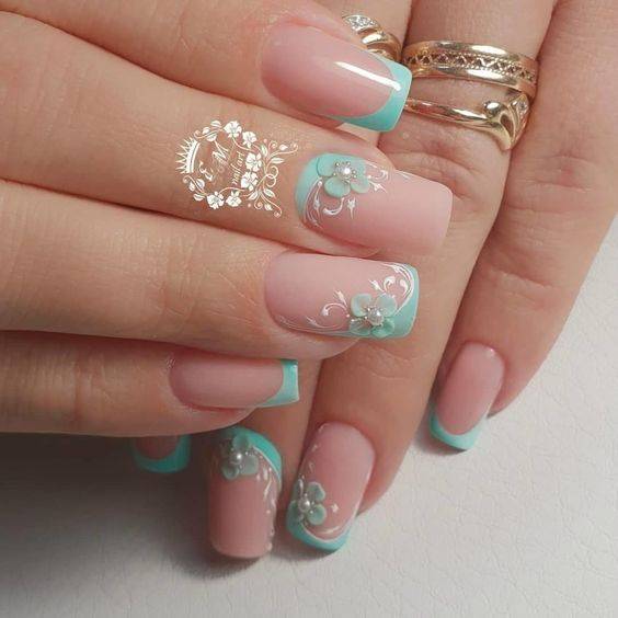 Отличной основой для любых мягких оттенков является светло-розовый. Сюда идеально подойдут такие оттенки как светло-бежевый, светло-бирюзовый или нежно-сиреневый. Используя такую цветовую гамму ваш маникюр идеально впишется в любой образ, будет смотреться довольно романтично, и подойдет как для романтического ужина, так и на каждый день.