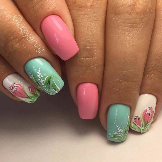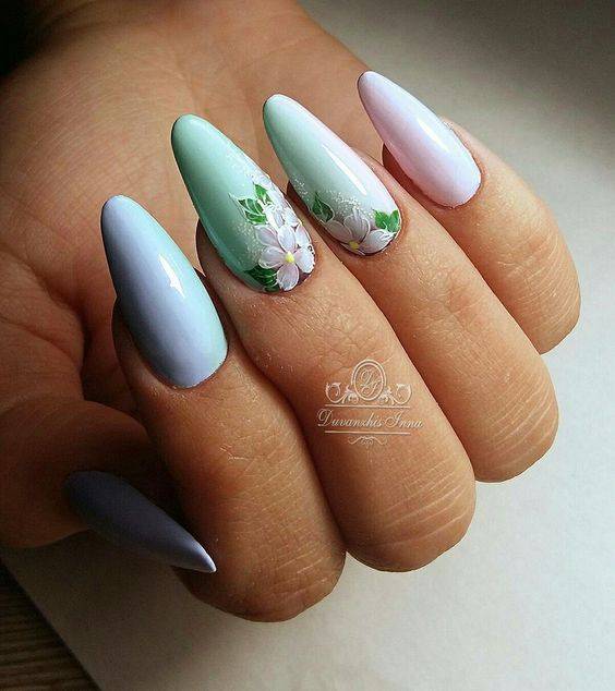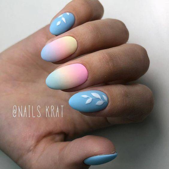 Отличное решение для коротких ногтей: пастельные разноцветные ногти и маленький рисунок на одном из пальцев. aguniad