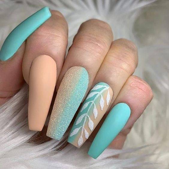 Будучи нейтральным, естественным оттенком, бежевый отлично подходит к мятному. Он часто используется для цветного френча или лунного маникюра. Кроме того, бежевый может выступать в качестве фона для нейл-арта.