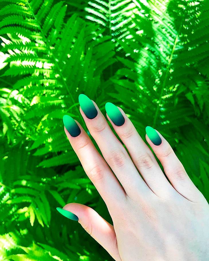 - Переход в более темный тон. Из мятного цвет постепенно переходит в тёмно-зелёный, становясь ярче и сочнее.