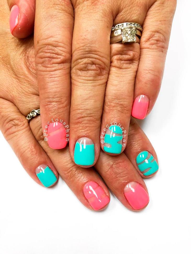 Такой яркий глянцевый маникюр будет особенно уместен на пляже. heather.nailed