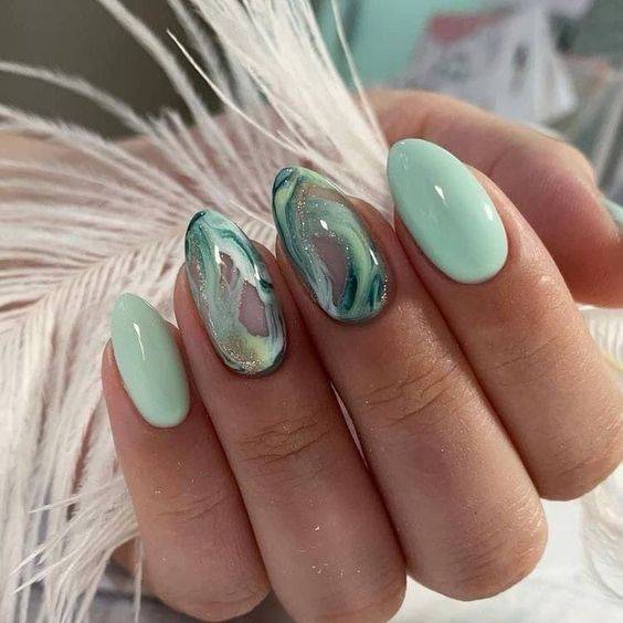 Комбинация цветов в мятном дизайне ногтей зависит преимущественно от его предназначения и пожеланий женщины. Чаще всего используют светлые оттенки.