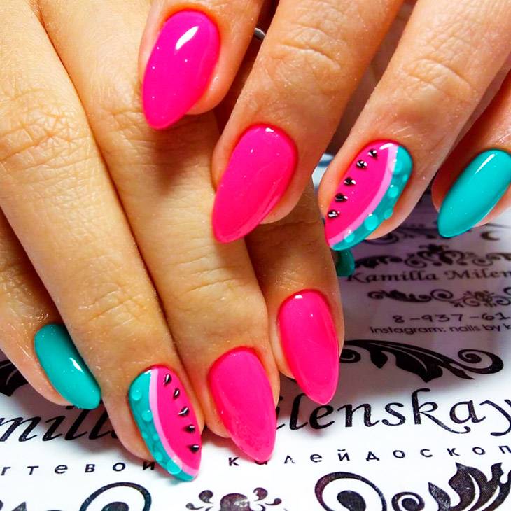 Нейл-арт с арбузом – пожалуй, самый простой способ создать модный «фруктовый» маникюр. patii.mm