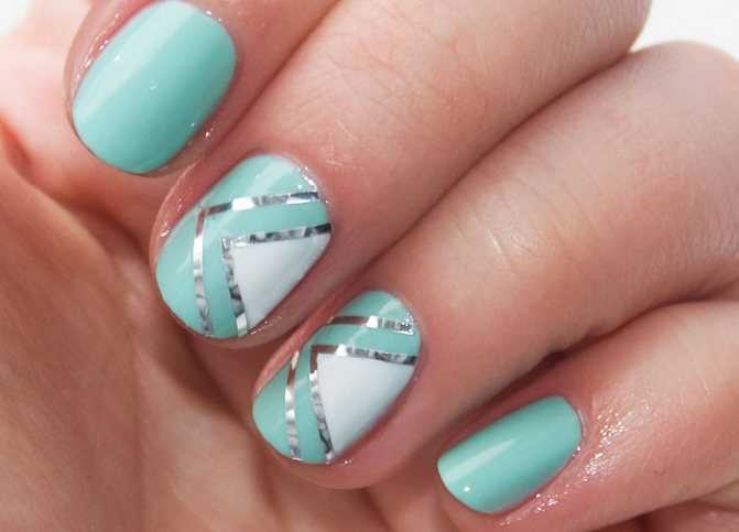 Разнообразные фигуры тоже позволяют создать стильный маникюр. Их наносят с помощью кисточек, лент, пластиной со штампа, скотча и даже зубочисток – они дают возможность сделать самые мелкие рисунки.