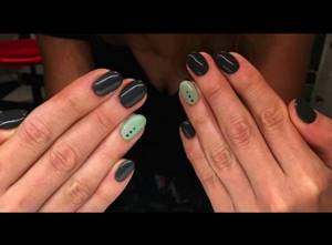 - Затемнение либо осветление мятного оттенка. Для этого можно воспользоваться черным или белым гель-лаком.