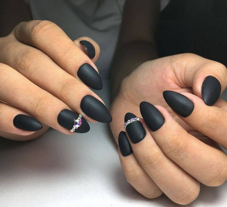 Пошаговые фото создания чёрного матового маникюра со стразами