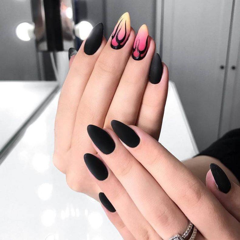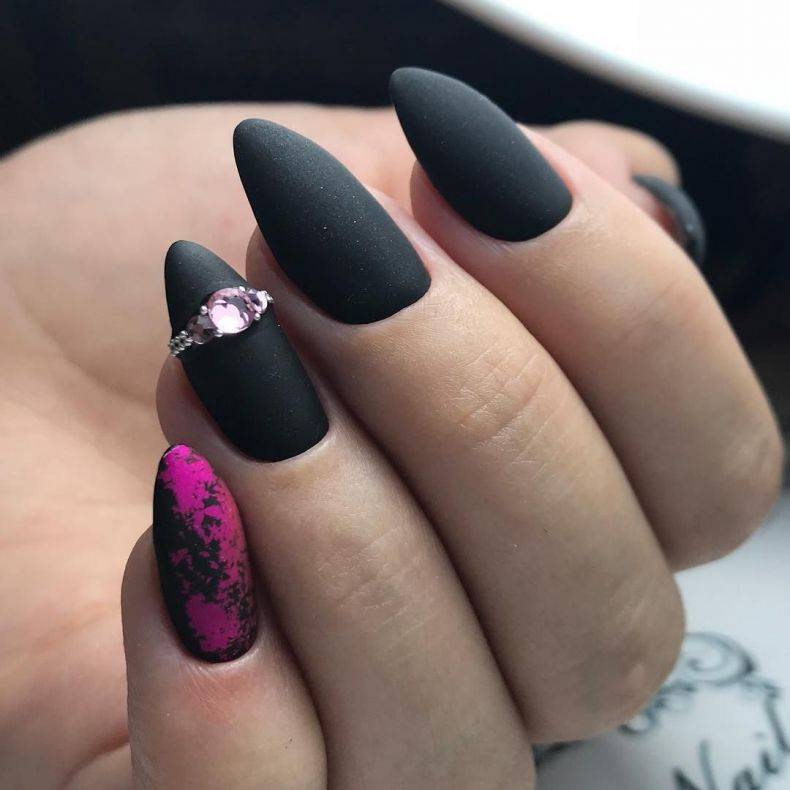 Стоит поговорить о самых ярких и интересных идеях матового маникюра для 2024 года. Одним из самых популярных на сегодня является именно черный матовый маникюр. Он очень неоднозначен, ведь требует очень придирчивого подбора украшений и дополнений всего внешнего вида полностью, чтобы все вместе смотрелось гармонично и стильно. Матовый черный, который сегодня предлагают именитые мастера в нейл индустрии, очень многообразен и богат на различные варианты: можно комбинировать даже с глянцевым стандартным покрытием, а еще украшать черный полосками, рисунками, различными бусинами и стразами.