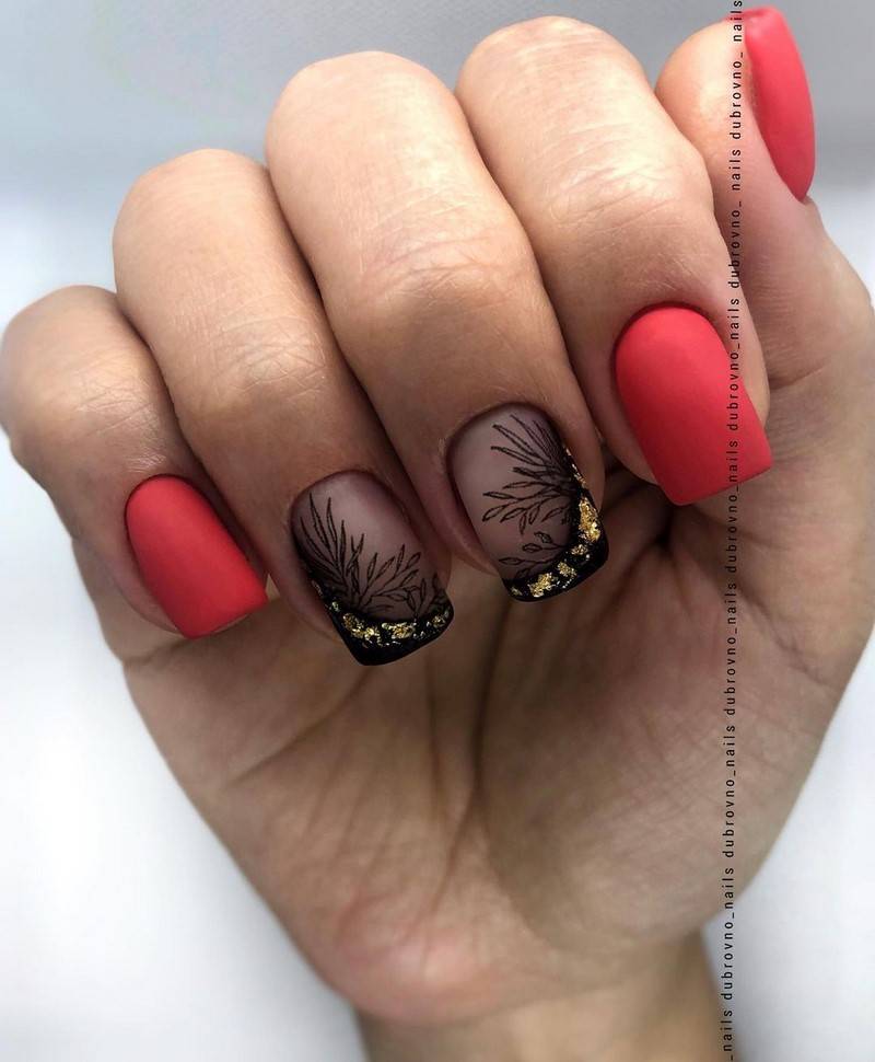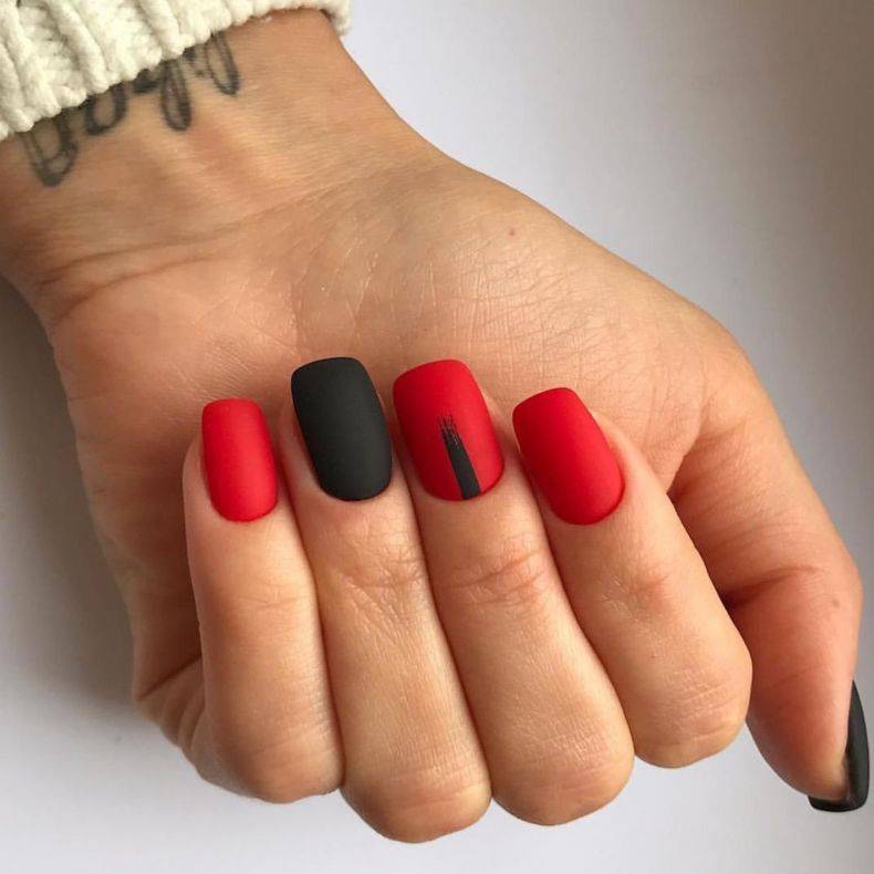 Страстный красный и алый цвета очень интересно смотрятся в матовой варианте как на коротких, так и на длинных женских ноготках. Красный маникюр в матовом покрытии, а если еще и в сочетании с грамотным декором и аксессуарами – один из лучших вариантов маникюра для особого случая. К примеру, для дня рождения, вечеринки по случаю чье-то юбилея, выпускного вечера или любого другого торжественного повода.