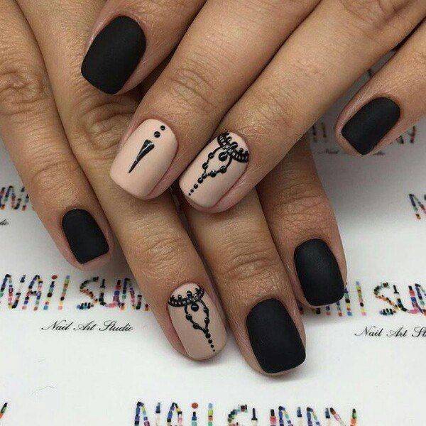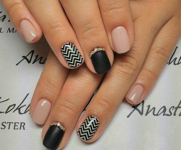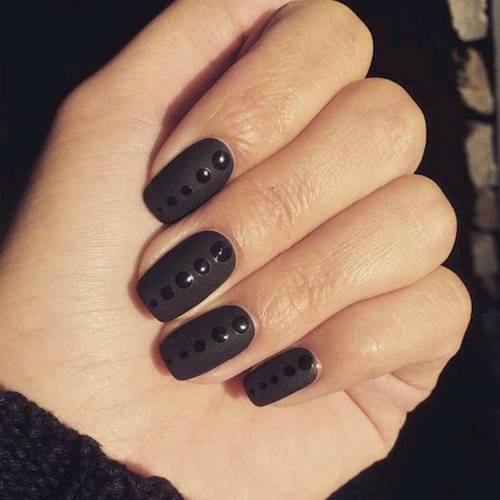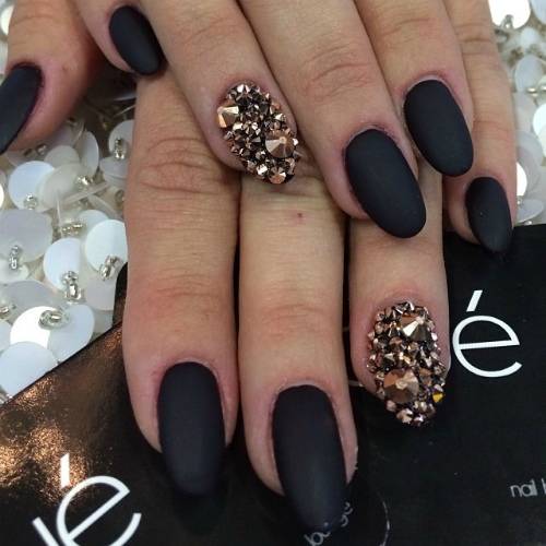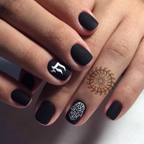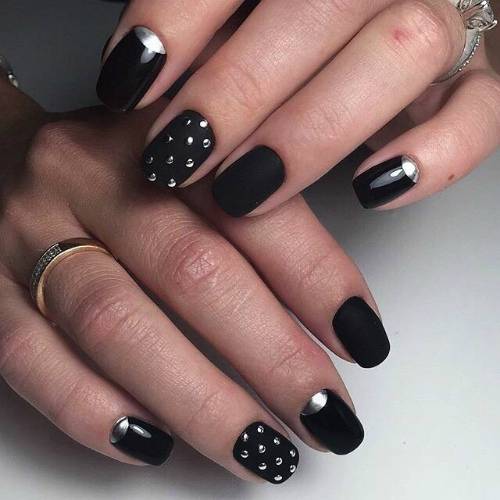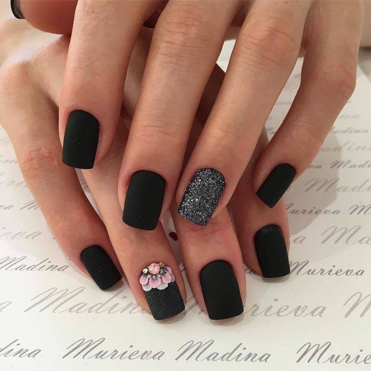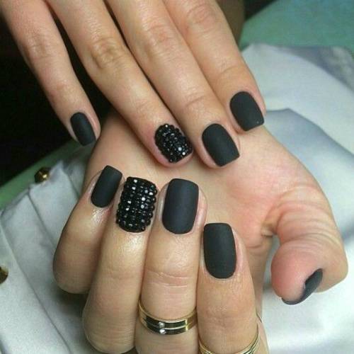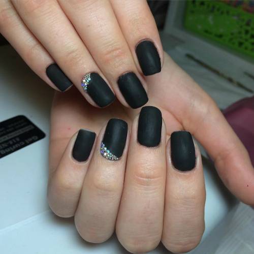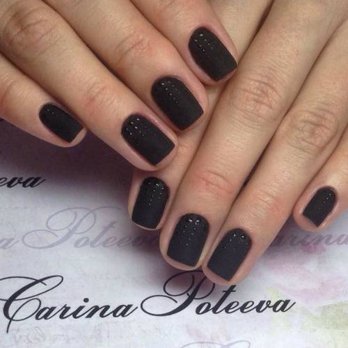 На заметку ценительниц натуральных данных, черные тона матового не разочаруют и вас. Рекомендуемая длина- короткая или средняя. Форма ногтей может быть любой – все зависит от желания и состояния ногтевой пластины.