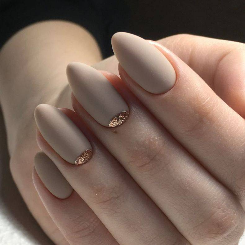 Это ультрамодная альтернатива привычному глянцевому нюду на ногтях. Такой маникюр сделает ногти максимально естественными. Если правильно выбрать оттенок, никто и не догадается, что на ногти нанесен лак. Это отличная возможность создать аккуратную базу, которую при необходимости можно украсить дополнительным декором. Например, для похода на торжественный прием или вечеринку в выходные.