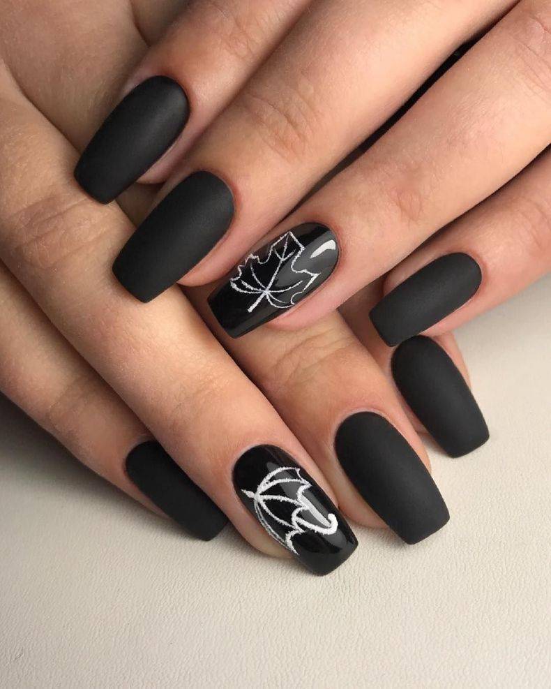 Черный лак давно перестал ассоциироваться с неформалами. Теперь маникюром этого оттенка могут похвастаться самые яркие модницы. А те, кто следит за последними тенденциями, выбирают матовое черное покрытие. Интересным решением станет сочетание глянцевой и матовой текстуры в маникюре. Это может быть глянцевая полоска черного френча на матовой базе, выделение одного ногтя на руке или нанесение рисунка.