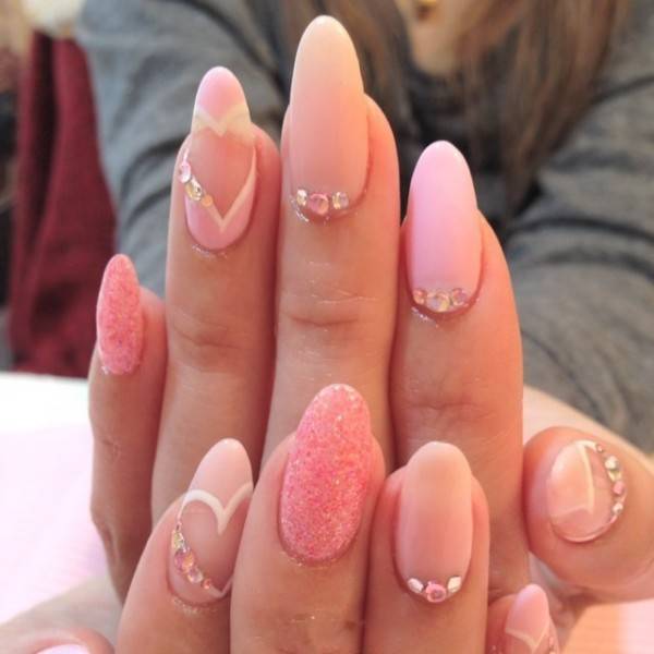 Миндальная форма — это нежно и женственно. Бархатная текстура только подчеркнет эти качества и сделает маникюр еще более романтичным. Для овальной формы подойдут практически все оттенки лака, любые виды дизайна. Главное правило — не перегружать образ.