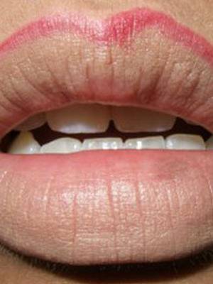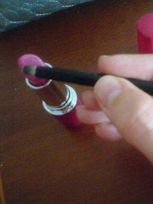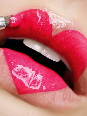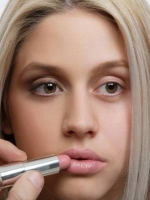 1. Перед тем как красить губы, кисточкой с бледно-розовой помадой мягко обводим «треугольники». Тщательно прорисовав их, вы добьетесь чувственности губ.