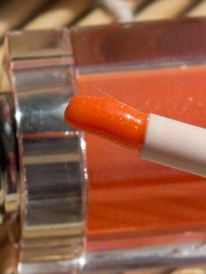 2. Прозрачным оранжевым блеском хорошенько закрашиваем контур, нарисованный в шаге 1, получаем губы с влажным блеском.
