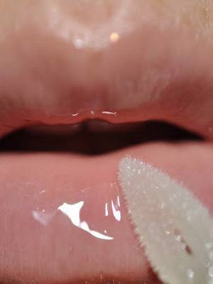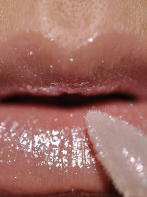 2. Наносим много прозрачного блеска только на середину верхней и нижней губ. Это сделает их блестящими.