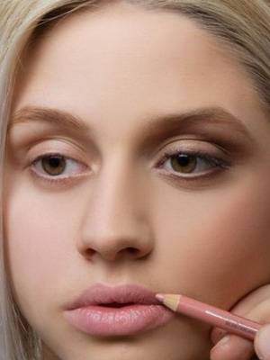 Затем обвести губы карандашом, чтобы очертить границы. Наносить карандаш нужно на внешний край. Затем заполнить свободное пространство в тон.