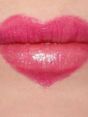 2. Наносим блеск более яркого розового цвета на треугольники верхней губы и в основании нижней так, чтобы получилась форма сердечка.