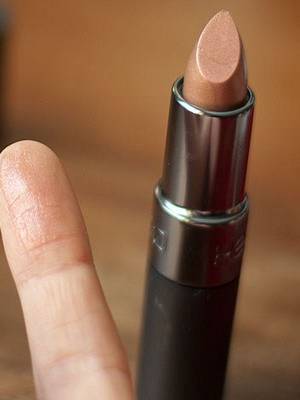 Не сушит губы, не скатывается, нет запаха, очень плотная, бархатистая текстура. При искусственном освещении могут обнаружиться мерцающие частицы, но их можно скрыть под прозрачной пудрой. Бюджетный вариант: стоит примерно $4,4.
