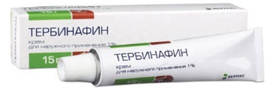 Этот крем от грибка кожи и ногтей также выпускается в виде эмульсии. Основное действующее вещество препарата – тербифанин. Он разрушает клетки возбудителя грибковой инфекции, убирает зуд и гарантирует первые положительные результаты спустя месяц после начала лечения.