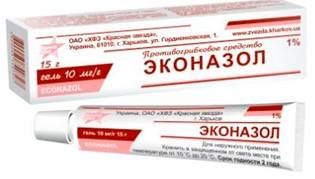 Активный компонент – Миконазол. Вещество нарушает целостность клеточной оболочки грибков, что приводит к их гибели. Препарат часто рекомендуют врачи. Продукт следует наносить на пораженные участки дважды в день, делая массирующие движения. Продолжительный курс лечения должен составлять до 3 месяцев. Если за это время проблема не пройдет, нужно подобрать другое лекарство. При наружном применении хорошо переносится и не вызывает аллергических реакций. Цена мази составляет около 100 рублей.