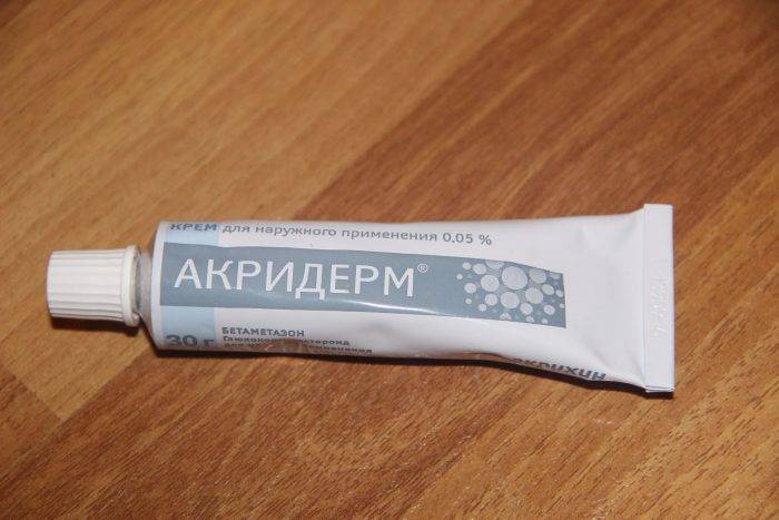 - Крем Акридерм – недорогой аналог по лечебному эффекту. В составе активное вещество – бетаметазон (гормон). Лекарство обладает противовоспалительным, противоаллергическим, антиэкссудативным, противоотечным и противозудным эффектами. Назначается при кожном зуде, нейродермите, дерматите, псориазе.