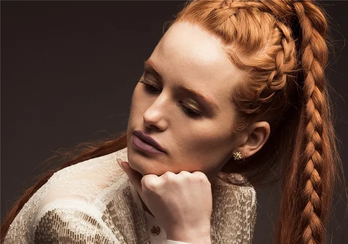 Густая копна красных волос, длинные наклеенные ресницы и макияж привлекают внимание к её личности