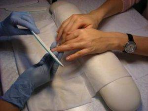 При лечебном педикюре не требуется предварительное распаривание ног, что очень удобно. Достаточно обработать их любым антисептическим средством. Итак, какие шаги включает в себя домашний лечебный педикюр?
