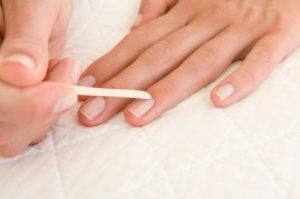 - Японский. Техника выполнения схожа с необрезным европейским маникюром, где для отодвигания кутикулы применяется деревянная палочка. Перед тем, как привести ногтевое ложе в порядок, на кожу и пластины наносится специальное размягчающее средство, оказывающее также укрепляющее воздействие.