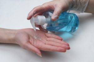 | Шаг 2 | ![]() | Руки обрабатываются специальным антисептическим средством в виде спрея или лосьона. |