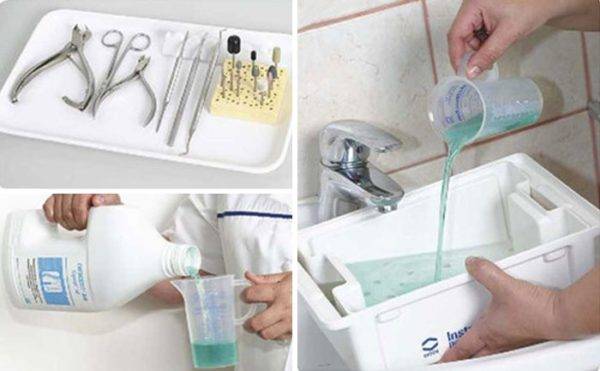 - обработка кутикулы и кожи рук осуществляется антисептическими и успокаивающими средствами;