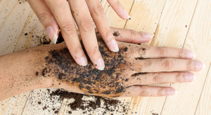 Сначала рекомендуется вымыть руки с мылом, почистить специальной щеточкой вокруг и под ногтевой пластиной. А затем нанести на руки и пальцы скраб. Скраб можно приготовить самостоятельно.