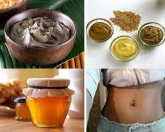 Подтягивающий, выравнивающий дряблую кожу эффект от использования косметической глины идеально сочетается в этой маске со стимулирующими свойствами горчицы усиливать кровообращения и тонизирующим действием меда. Этот состав для обертывания обладает омолаживающим, лифтинговым свойством при похудении. Смешайте 4 части глины (черной или голубой) с небольшим количеством воды до вида густого пюре, по 1 части сухой горчицы, меда.