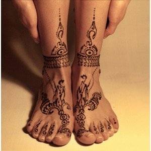 Мехенди на ноге или других частях тела рисуется хной, которая продается в виде порошка или готовой смеси. Если выбирают хну в виде порошка, необходимо самостоятельно замешивать нужную массу.