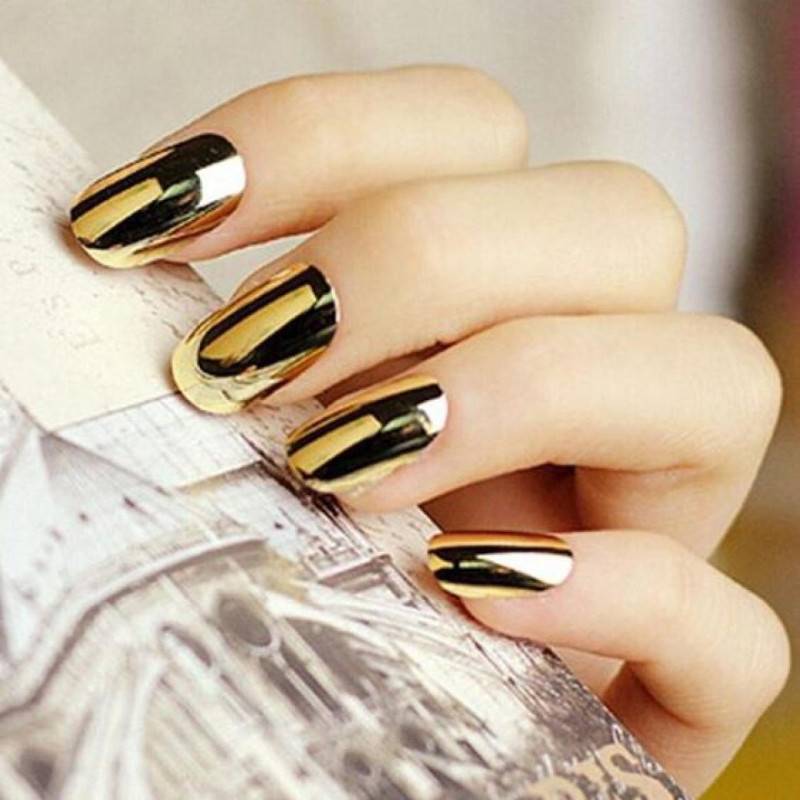 Как видите сделать ногти схожие с драгоценными металлами, такими как золото и серебро, совершенно не сложно и в домашних условиях. Он прекрасно гармонирует с разнообразным дизайном и цветовой гаммой. Чтоб отвлечь от себя образ безвкусной и вульгарной дамы, нужно будет снять все украшения с рук. Зеркальный маникюр и без украшений выглядит дорого!