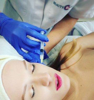 После тщательного удаления макияжа и очищения лица, косметолог обрабатывает кожу антисептическим средством и обезболивает. Хотя местный анестетик (гель) не полностью устраняет боль — процедура немного болезненна — высокие аnti-age результаты мезотерапии/биоревитализации мотивируют клиенток потерпеть неприятные ощущения.