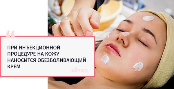 В день процедуры не рекомендуется пользоваться декоративной косметикой. Перед началом сеанса косметолог очистит кожу и проведёт анестезию. А именно — нанесёт на лицо крем или гель с содержанием анестетика. Это поможет снизить болевые ощущения во время инъекций.
