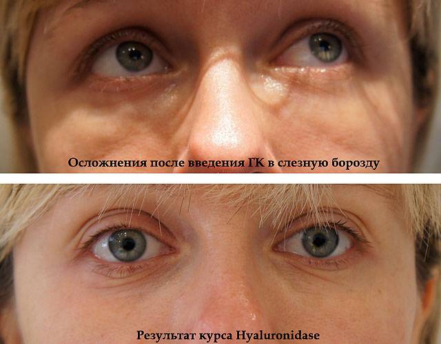 В большинстве случаев корректировать проблему приходится инъекциями средств, рассасывающих гиалуроновую кислоту. Иногда используют бесконтактные физиопроцедуры (дарсонвализацию, ультразвук).