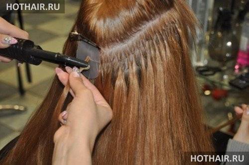 Это метод крепление донорской пряди посредством кератиновой или клеевой капсулы, которую подкладывают под свои волосы и крепят при помощи размягчения или зажимания.