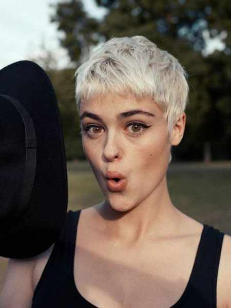 Характерная особенность прически пикси – открытые ушки. Стрижка максимально укороченная. Обязательно короткие прядки сзади. Чуть длиннее волосы на макушке и спереди. Такую прическу называют мальчишеской.