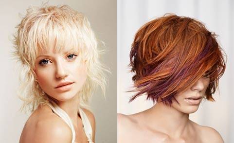 Весьма эффектно смотрятся многослойные стрижки на средние волосы, выполненные в технике рваных прядей. Такие прически создают непринужденный и романтичный образ, который так полюбился многим женщинам. При этом, чтобы придать объем укладке, достаточно лишь высушить шевелюру, приподнимая локоны у корней, а концы заворачивают в нужную сторону при помощи круглой щетки.