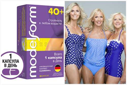 В результате применения средства начинается активное снижение веса. Процесс проходит без последствий и неприятных ощущений, поскольку в состав MODELFORM, согласно инструкции по применению, входят только компоненты натурального происхождения. Особенно это хорошо для женщин после 40 лет, когда в период менопаузы ухудшается самочувствие. Таблетки серии 40+ восстанавливают уровень гормонов, устраняя симптомы климакса, способствуя снижению веса.
