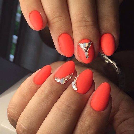 - для коротких овальных ногтей – яркие, сочные тона, которые сразу бросаются в глаза – красный, коричневый, чёрный, темно-синий;