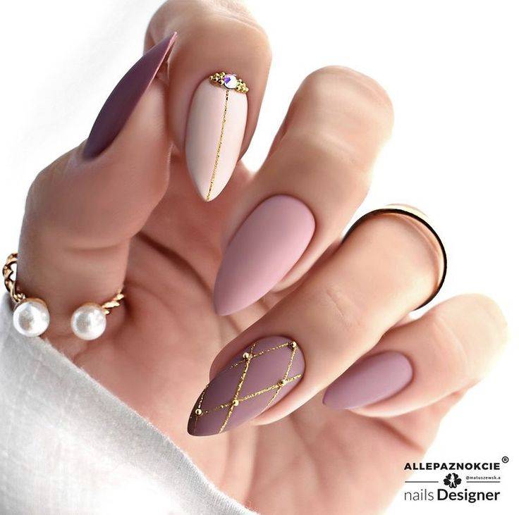 От овальной формы миндалевидную отличает заостренный, чуть вытянутый кончик ногтя. Некоторые считают, что для того, чтобы пропорции были идеальными, длина свободного края должна равняться длине ногтевого ложа. Поддерживать такую форму не так уж сложно, однако на первый план выходит укрепление ногтей — учитывая длину, стоит дополнительно позаботиться о том, чтобы они были крепкими и не ломались.