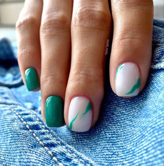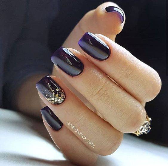 - для квадратных коротких ногтей – любые оттенки, в том числе тёмные, но интереснее всего смотрятся глянцевые покрытия;