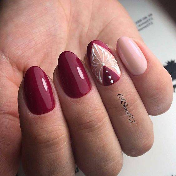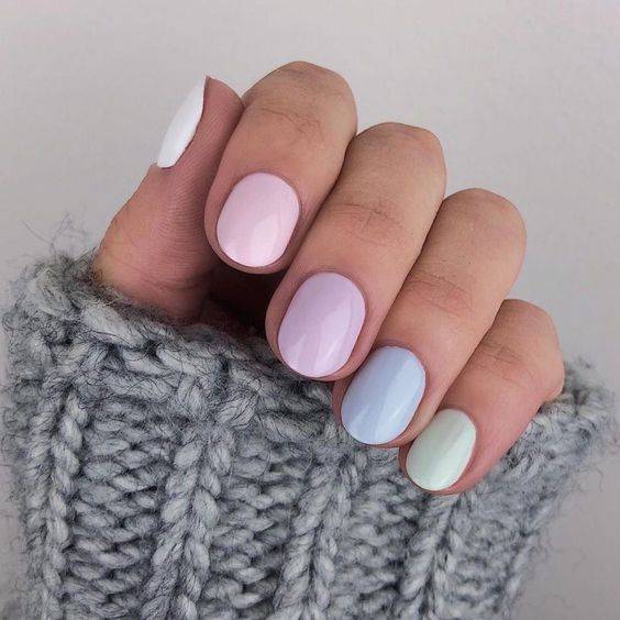 - для круглых ногтей – пастельные лаки (розовый, бежевый, небесный), а также некоторые яркие покрытия – бордовый, алый, оранжевый, терракотовый;