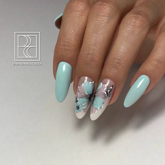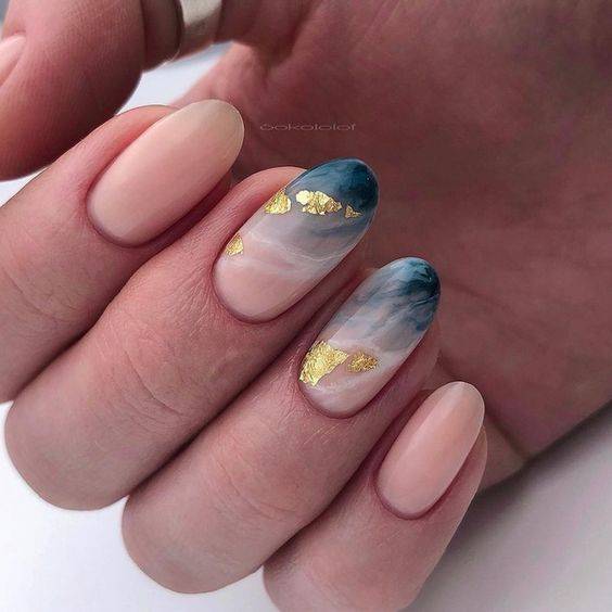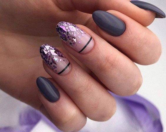 - для миндалевидных ногтевых пластин – пастельные лаки, металлик, дизайн с яркими основаниями и светлыми кончиками, градиент;