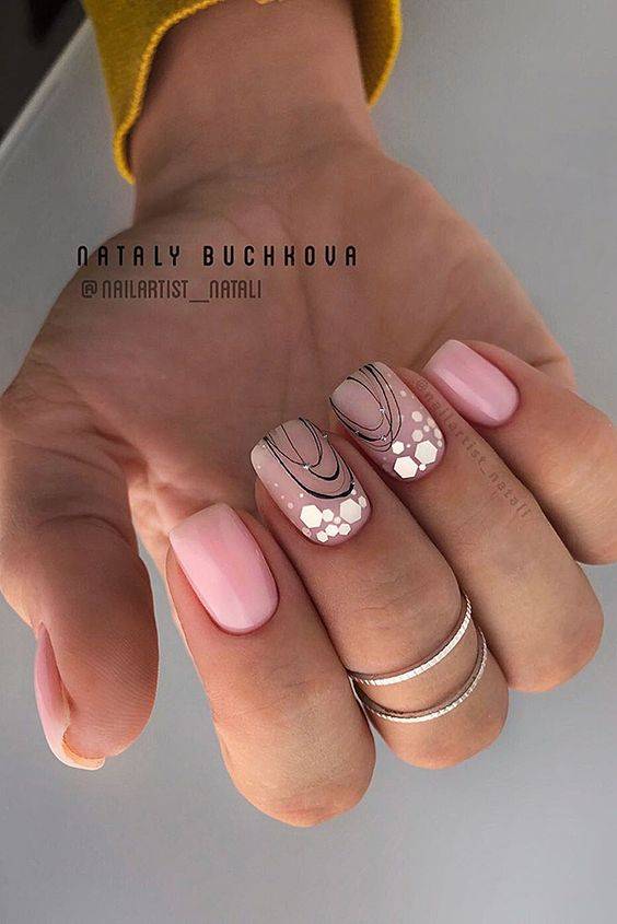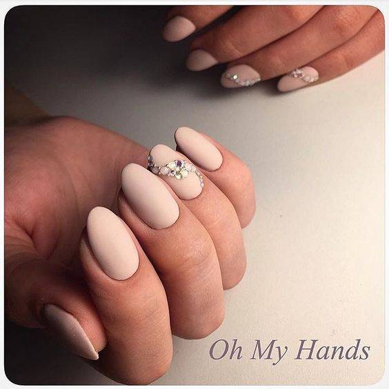 Если же пластины короткие, то их стоит оставить круглыми или квадратными, но применять только светлые оттенки лака и нежный, неяркий декор. Нюдовые оттенки на ногтях выглядят будто бы продолжение пальцев, что визуально делает их длиннее.