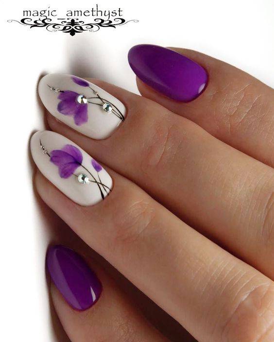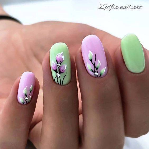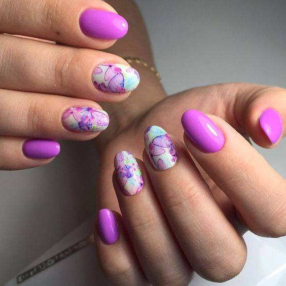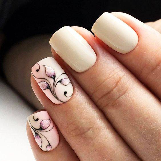 - для средних по длине овальных пластин – все нюдовые тона с рисунками во флористической тематике или с геометрией;